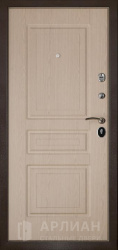 Надежная входная белая дверь с качественной фурнитурой и внутренней отделкой цвета орех №3