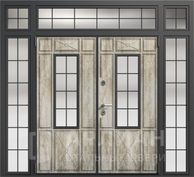 Металлическая входная дверь в коттедж с верхней фрамугой №10