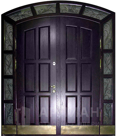 Фото «Входная арочная дверь с витражом и решеткой №419»