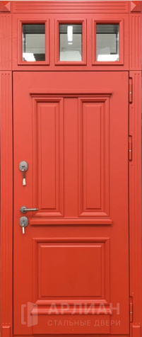 Теплая металлическая дверь с фрамугой входная №435