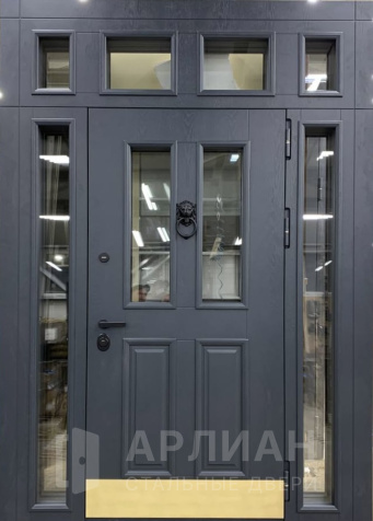 Металлическая входная дверь в коттедж с верхней фрамугой №10